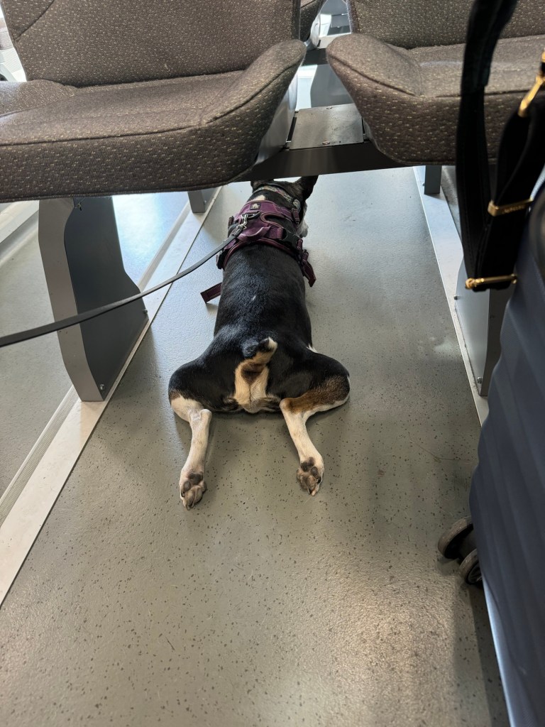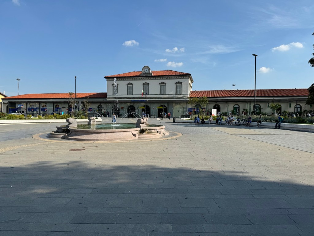 Our journey began at the train station in Bergamo — a very easy train station to navigate. It’s about a 10” walk from our apartment in city center. It’s along the Train Nord rails and travels a regular route between Bergamo and Milan. At a cost of €6,60 (about $7.50 at the current exchange rate), it’s about a 45” ride. Paolo makes himself comfortable! Summer travel is free for domesticated animals. While the rule is to muzzle dogs, I have seldom seen dogs muzzled. I am sure, however, to always have a muzzle handy in case I need it.